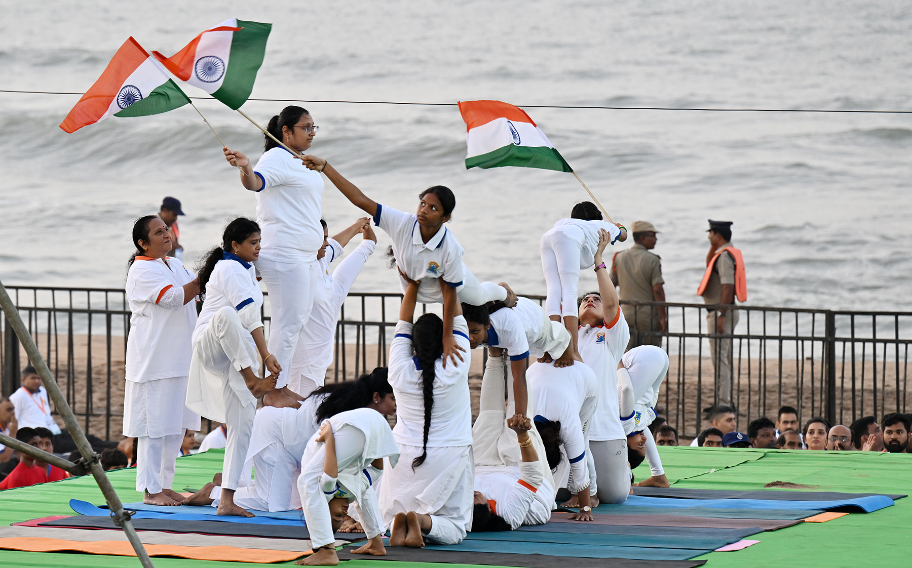 Glimpses of the 11th International Day of Yoga celebrations at Visakhapatnam, in Andhra Pradesh on June 21, 2025. Prime Minister Narendra Modi participated in the event.