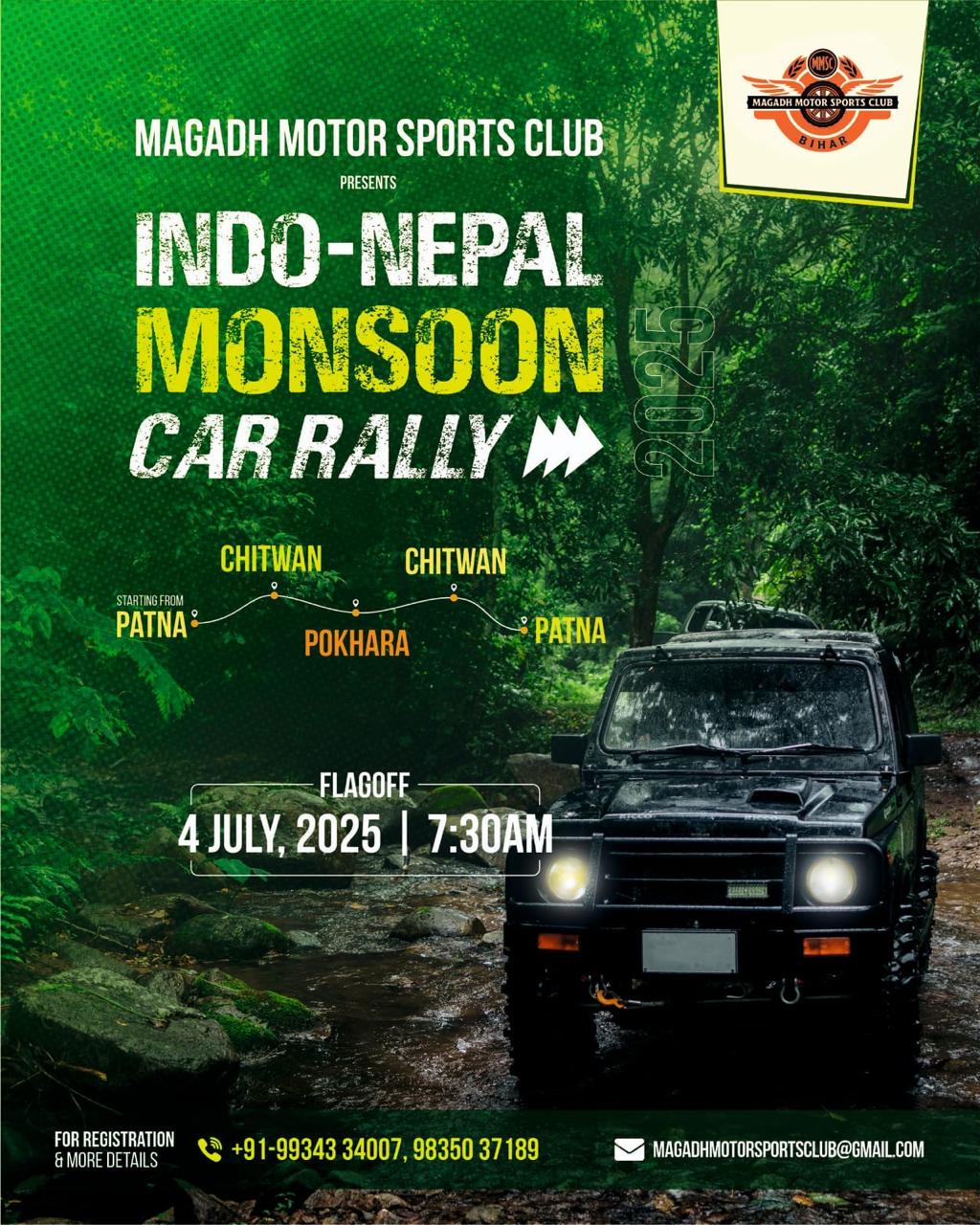 Patna: Monsoon rains hammer Patna, turning streets into torrents and the air into a primal roar of adventure. Come July 4, 2025, the Magadh Motor Sports Club, Bihar’s motorsport powerhouse for over 20 years, will launch the Indo Nepal Monsoon Car Rally 2025—a five-day, tyre-shredding epic until July 8 that’s set to defy nature’s fury. This isn’t a race; it’s a mud-charged, hill-crushing, border-storming odyssey, weaving India-Nepal friendship, boosting tourism, and training drivers to conquer the monsoon’s chaos—low visibility, slick traction, and brutal terrain. With over 30 drivers and navigators in 15 rugged 4x4s, this 24th major rally since the club’s 2005 founding will be Bihar’s heart-pounding war cry to the world.