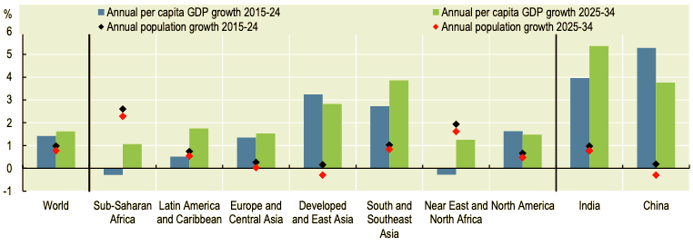 Food demand will rise by 13 per cent by 2034, mostly in low- and middle-income countries where populations are growing and people are getting wealthier. In middle-income countries, half of this growth comes from people eating more per person, but in low-income countries, three-quarters is due to population growth. Rising incomes and city life are pushing people to eat more varied, nutritious foods like meat and fish. Yet, many in lower-middle-income countries will struggle to afford healthy diets, and low-income countries will stay far below nutrition goals, showing deep inequalities that clever farming must tackle.