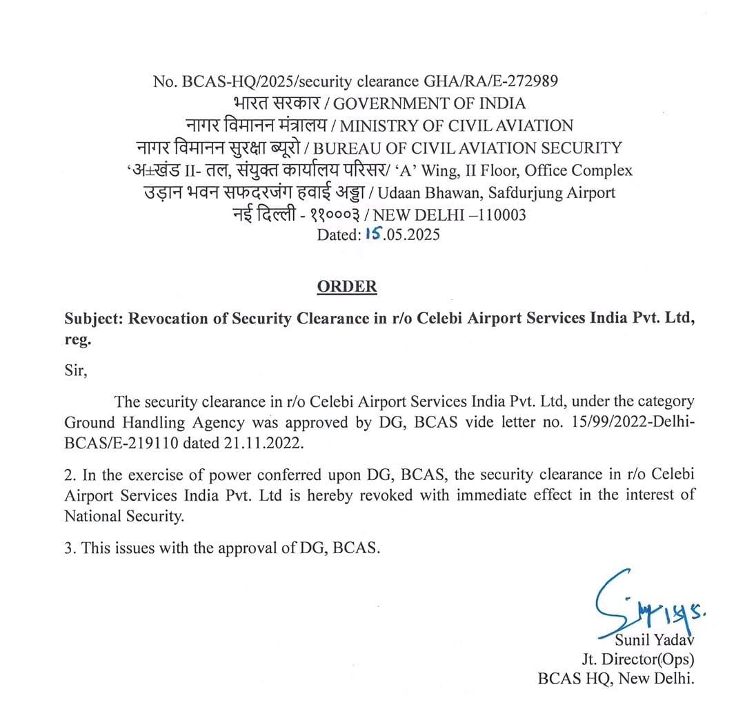New Delhi: The Bureau of Civil Aviation Security (BCAS) has revoked the security clearance for Celebi Airport Services India Pvt Ltd, a company owned by Turkish interests, thereby suspending its ground handling and cargo operations at nine significant Indian airports, which include Delhi, Mumbai, Bengaluru, Hyderabad, Chennai, Ahmedabad, Goa, Cochin, and Kannur. The decision, effective immediately, stems from national security apprehensions linked to Türkiye’s recent geopolitical actions, particularly its reported military support for Pakistan during India-Pakistan tensions.
