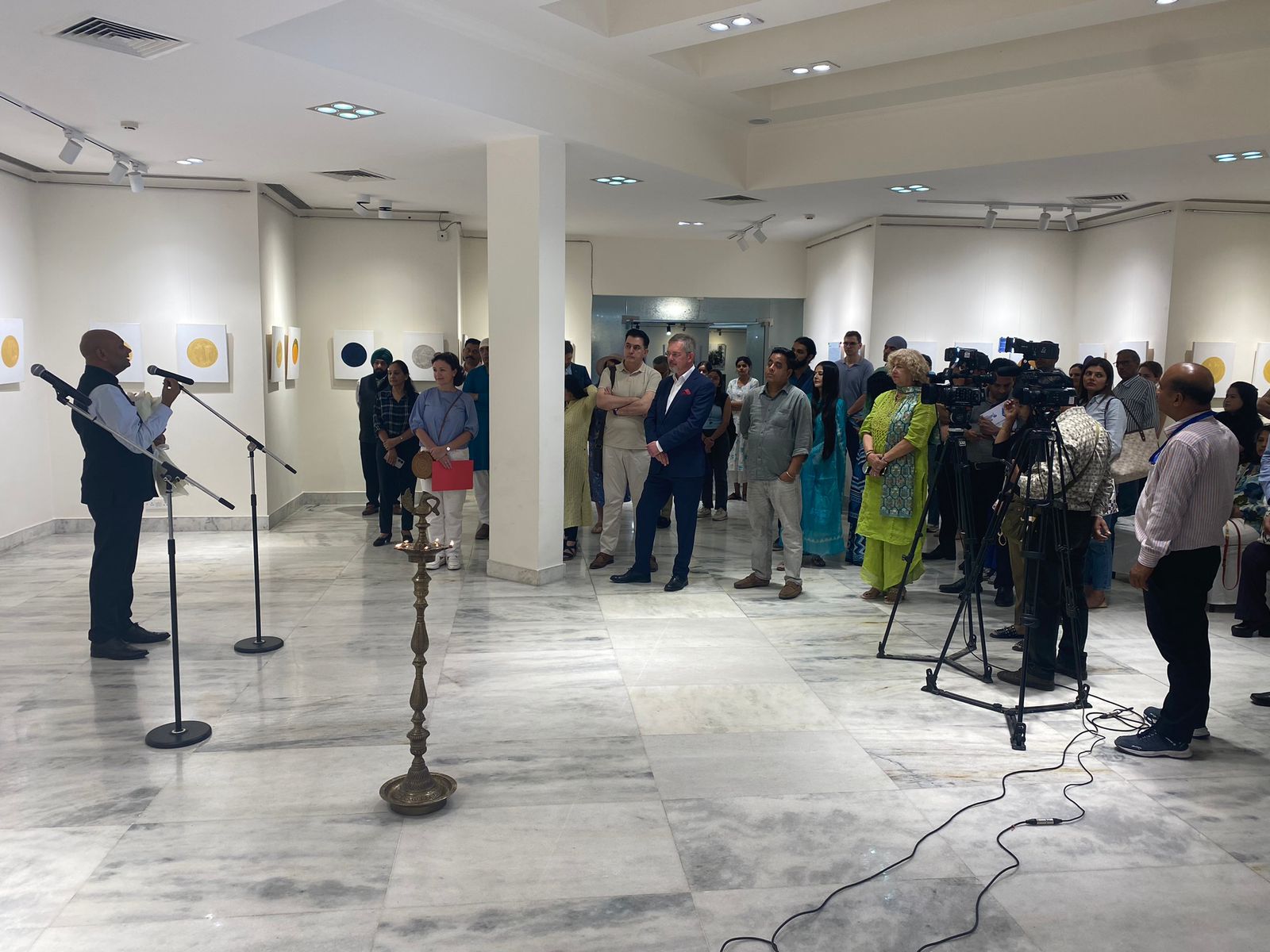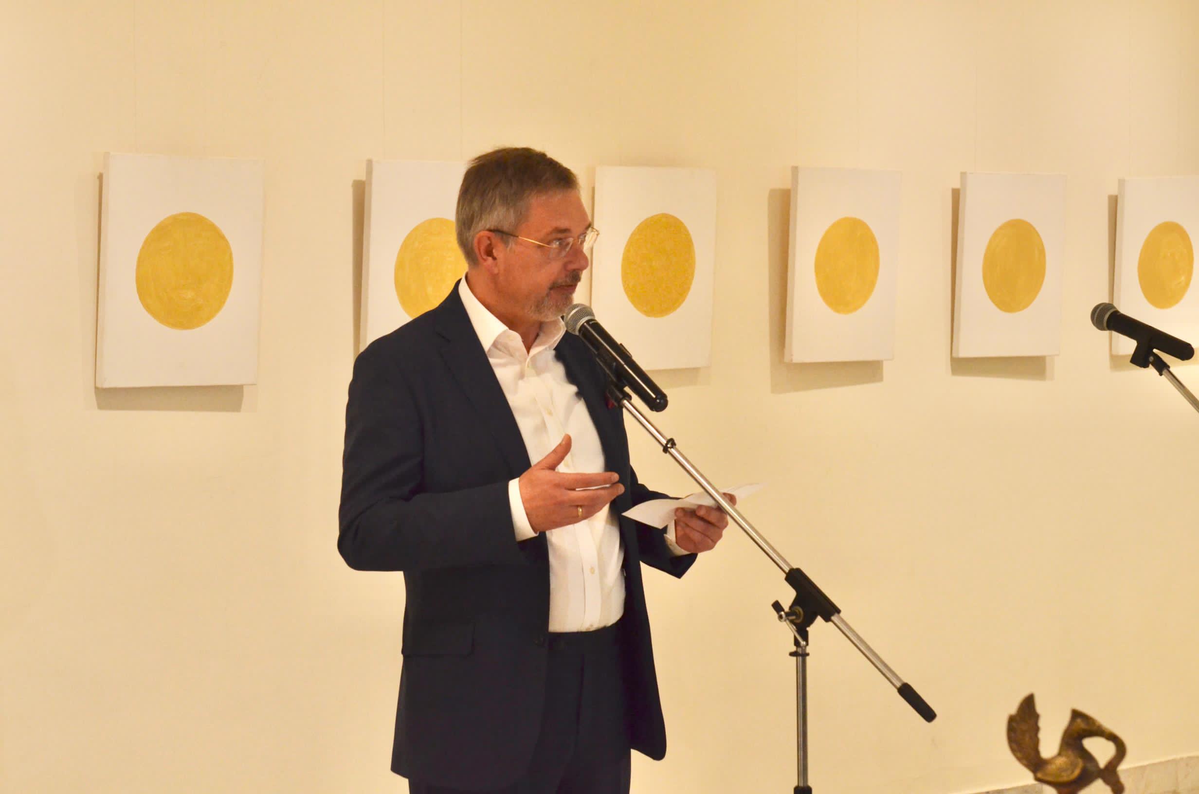 In his opening remarks, Ambassador Alipov described “Shunyata” as a profound invitation to pause and reflect, rooted in the Buddhist philosophy of Shunyata, or emptiness. “These paintings create space — space to feel, to reflect, to simply pause,” he said, praising the muted tones and incomplete forms that define Abhay K.’s watercolour canvases. He noted that the exhibition, a visual reflection on emptiness as a source of form and internal movement, doesn’t impose meaning but invites viewers to discover their own. “What touches me most is how personal this work feels. It doesn’t seek applause. It seeks presence. It offers the viewer an atmosphere — a gentle nudge toward stillness in a world that rarely stops,” Alipov added. He emphasised that the works require a thoughtful look, with outlines born from emptiness revealing themselves only in silence and concentration. Quoting the philosopher Nagarjuna, Alipov highlighted the exhibition’s philosophical depth: “Emptiness wrongly grasped is like picking up a poisonous snake by the wrong end.” In Abhay’s work, however, “Shunyata is not something to fear — it is an invitation to explore.”