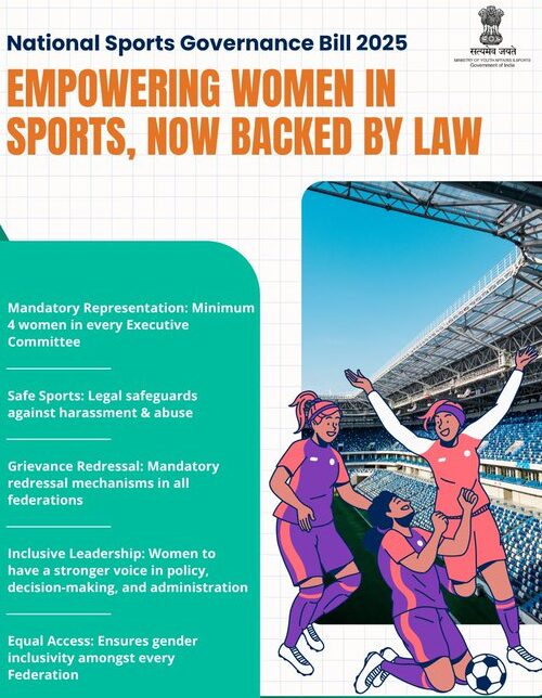 The Ministry referred to Badminton player Lakshya Sen sharing his thoughts on the social media platform X, describing the passage as a “historic moment” that raises standards for governance and athlete support. Para-javelin athlete Sumit Antil highlighted specific provisions, including the National Sports Election Panel, a Code of Conduct, a Safe Sports Policy, and a Grievance Redressal Mechanism, noting their potential to ensure fairness and give stakeholders a stronger voice in sports administration.